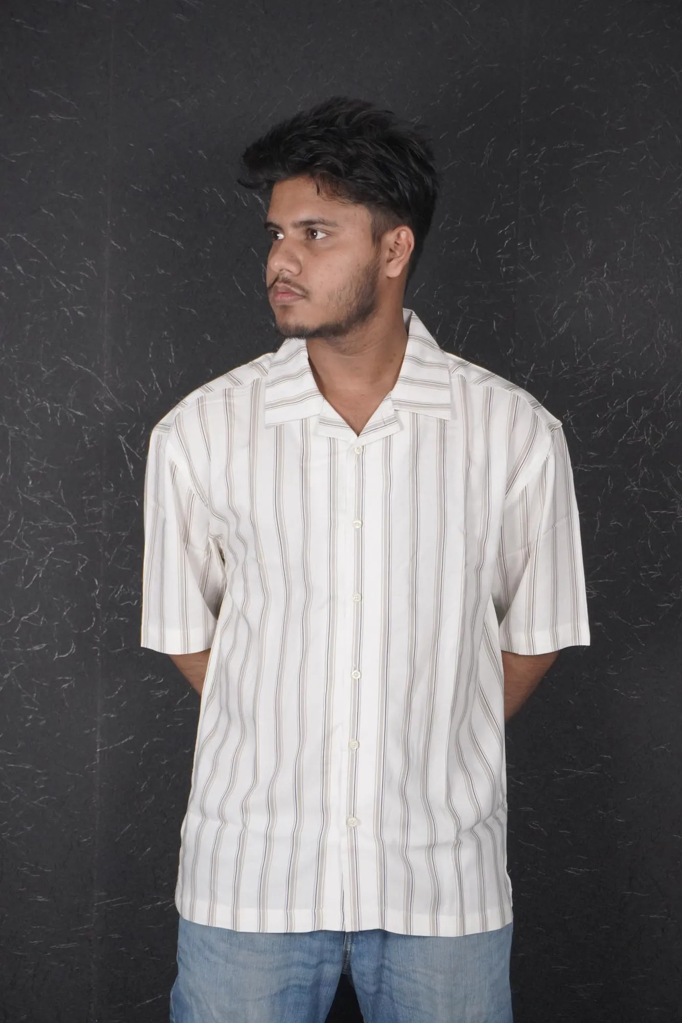 Elevate your wardrobe with the timeless and stylish Drop Shoulder Cuban Shirt. Crafted from a premium soft cotton blend, this shirt features a sleek striped pattern that adds a modern touch to a classic design. The relaxed-fit drop-shoulder silhouette ensures ultimate comfort and a laid-back yet polished look.