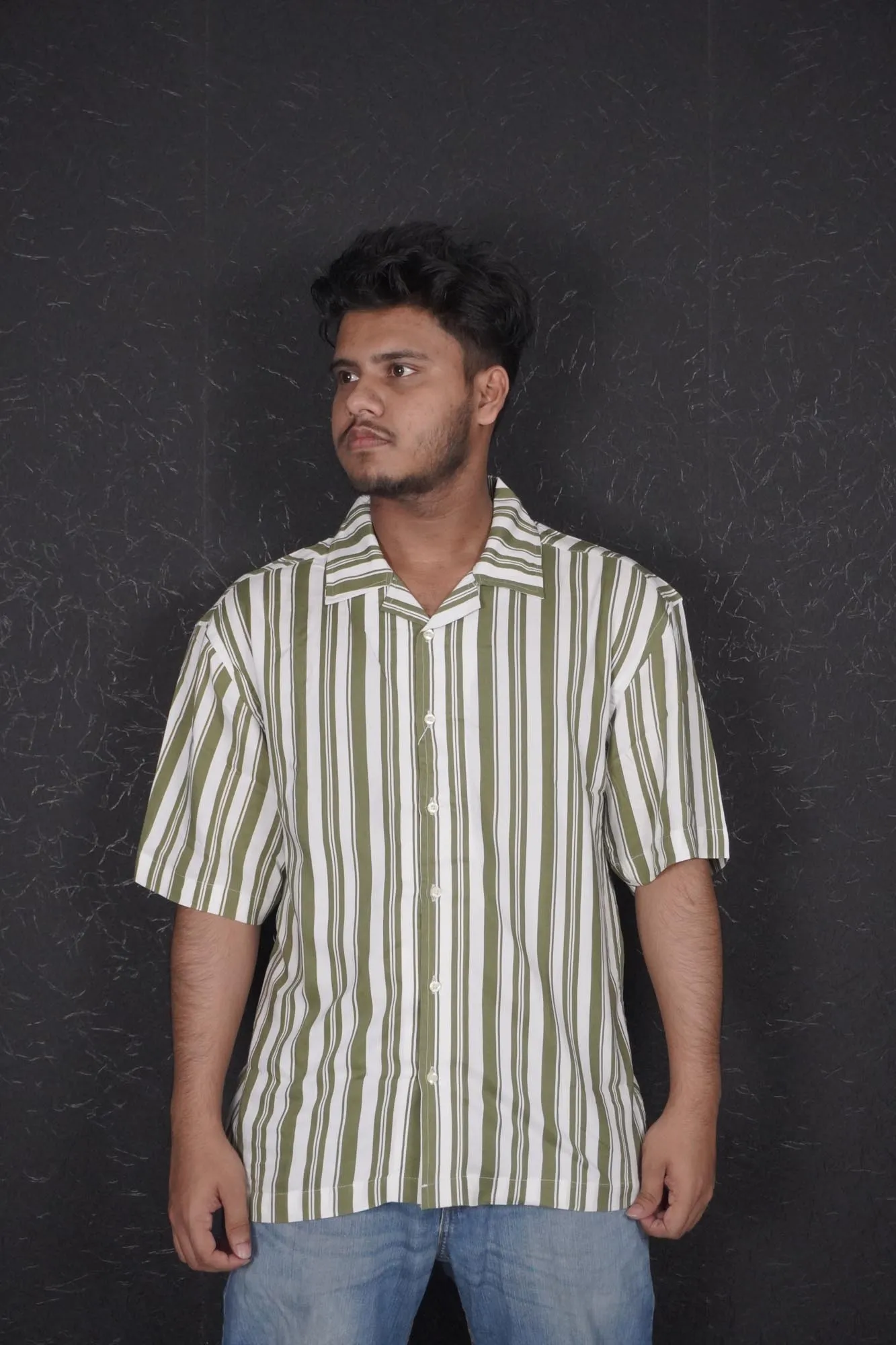 This Drop Shoulder Cuban Shirt is the perfect blend of style and comfort. Featuring a bold olive-green striped design, this shirt is made from a premium cotton-linen blend, ensuring breathability and all-day comfort. With a relaxed-fit and drop-shoulder style, it offers a laid-back, modern look that’s ideal for casual outings, vacations, or everyday wear. The lightweight fabric and Cuban collar give this shirt a fresh, trendy appeal that’s both stylish and effortless.